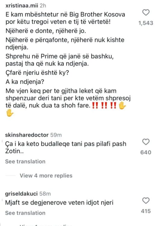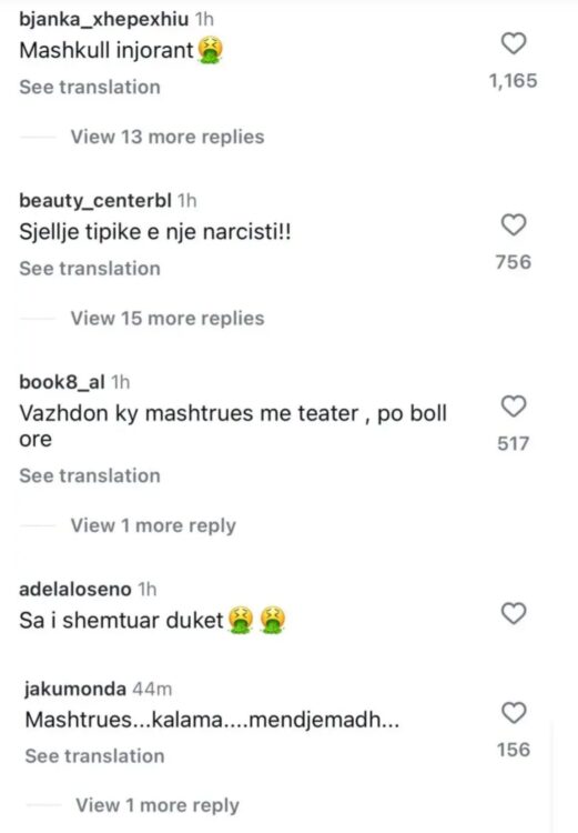 Përveç kësaj, ndjekësit janë irrituar edhe nga mënyra sesi ai ka komentuar për gjendjen e saj, duke thënë: