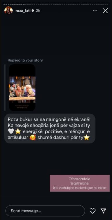 Së fundmi, në një InstaStory, ajo u është përgjigjur fansave që e pyesnin për arsyet e largimit nga televizioni.