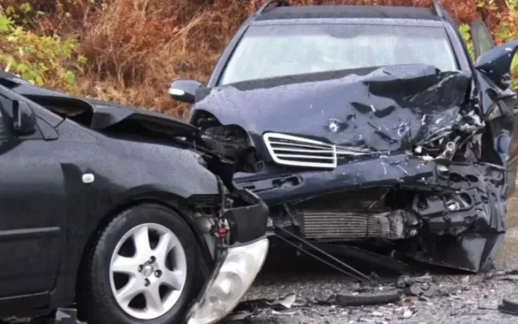 Ku mësojet se dy automjete janë përplasur më njëri-tjetrin.