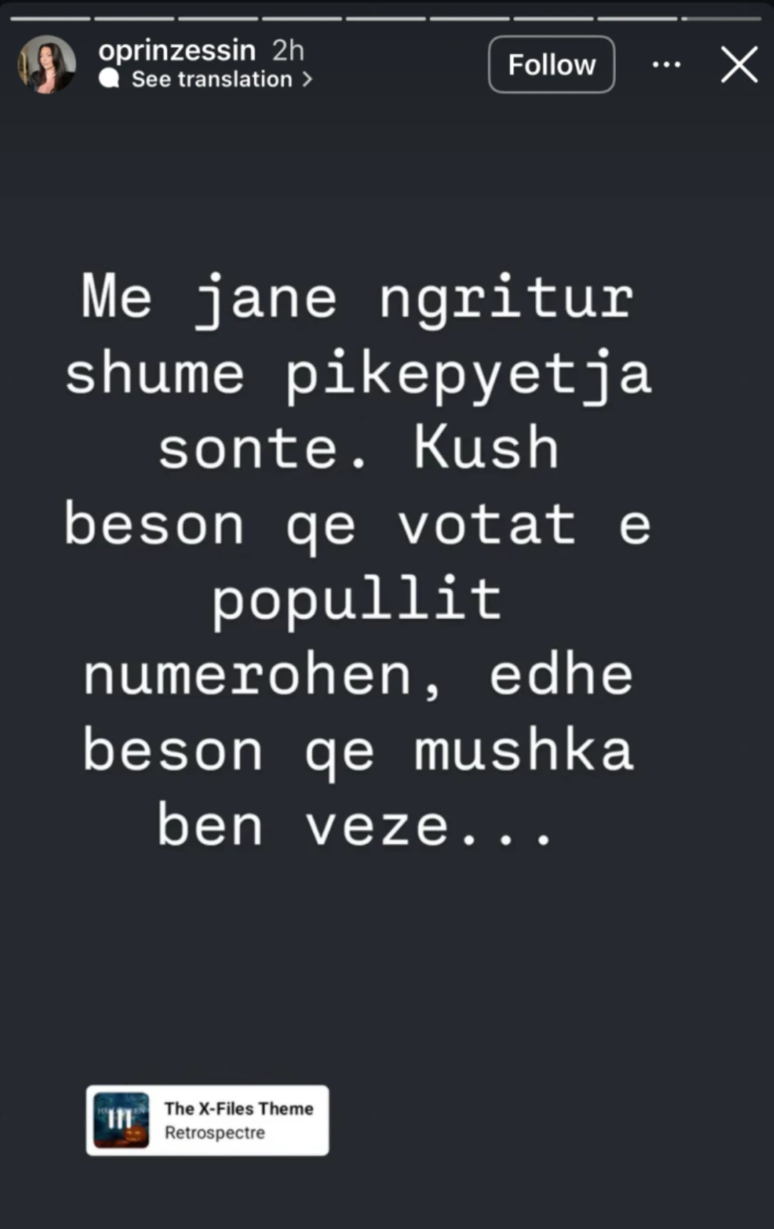 Në një Instastory që po bën xhiron e rrjetit, ajo ka shkruar:
