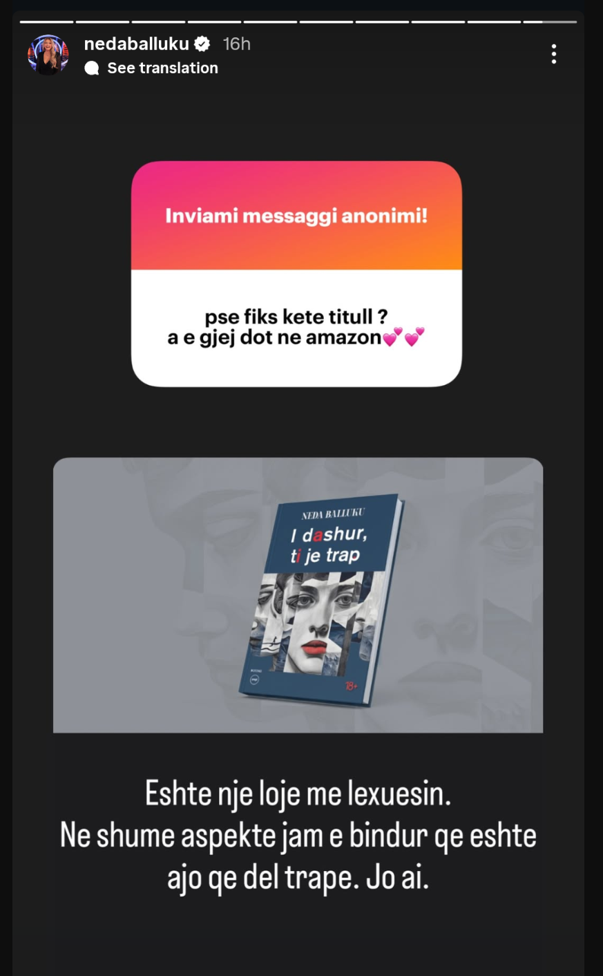 Neda vazhdon të jetë aktive në rrjetet sociale, ku mbrëmjen e djeshme, një ndjekës e pyeti në InstaStory se pse zgjodhi pikërisht këtë titull provokues për librin e saj.