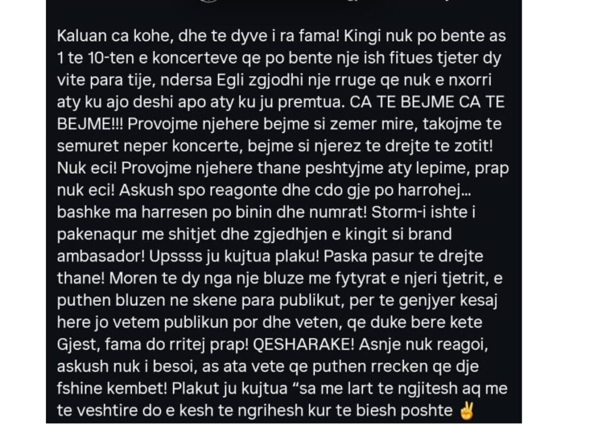 Kur Egli mbrëmë puthi bluzën me fytyrën e Gjestit në koncert, shumë e panë si një moment romantik.