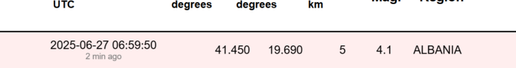 Lajm i Fundit: Tjetër Tërmet Godet Shqipërinë…