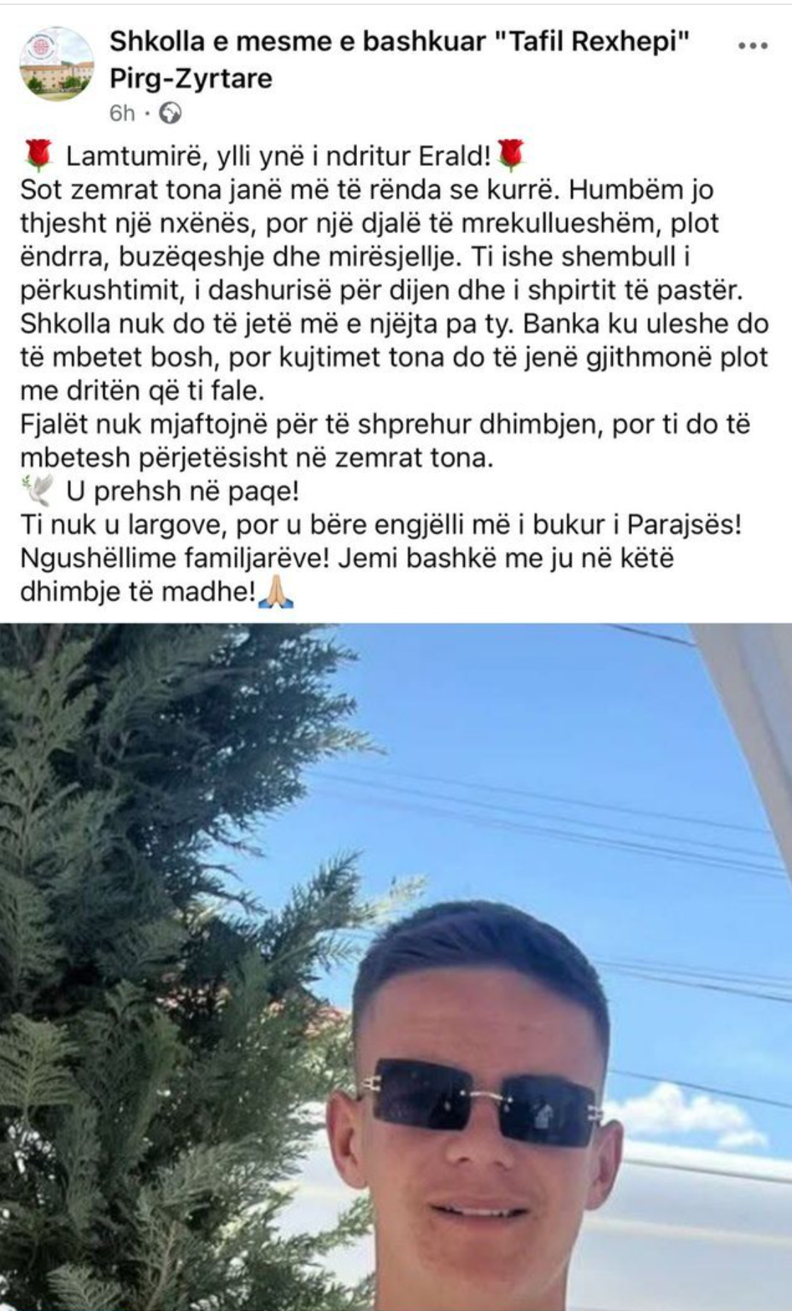 Përmes një postimi në “Facebook”, shkolla shkruan se nuk humbën vetëm një nxënës por një të ri plot ëndërra dhe mirësjellje.