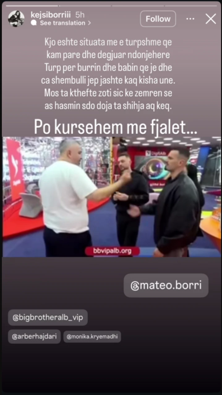 Pas përplasjes së fortë mes Rogerit dhe Mateos, ku u përdorën fjalë tepër të rënda dhe u përfshi familja në debat, ka reaguar publikisht edhe motra e këtij të fundit, Kejsi Borri.