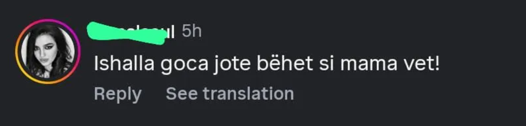 Ndërsa një tjetër komentues ironizon duke i kujtuar atij modelin e vërtetë që vajza duhet të ketë: “Ishalla goca jote bëhet si mama vet!”.