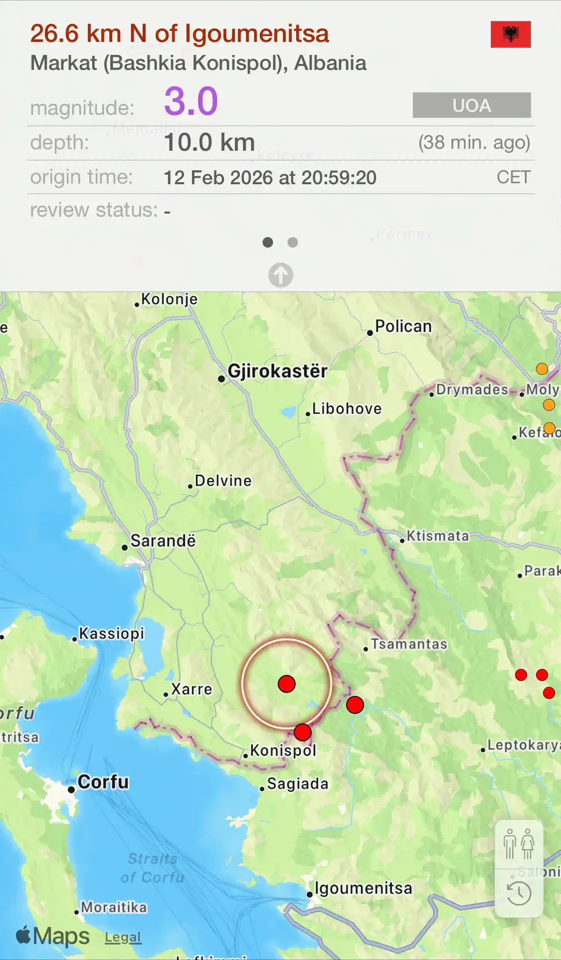 Sipas EMSC, epiqendra e lëkundjeve ka qenë Konispol.