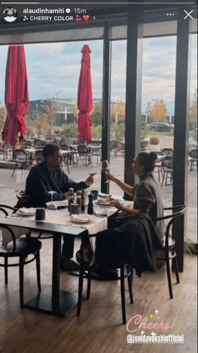Në fotografinë e publikuar nga Alaudini në rrjete sociale, dyshja shihen duke ngritur gotat në një ambient elegant,