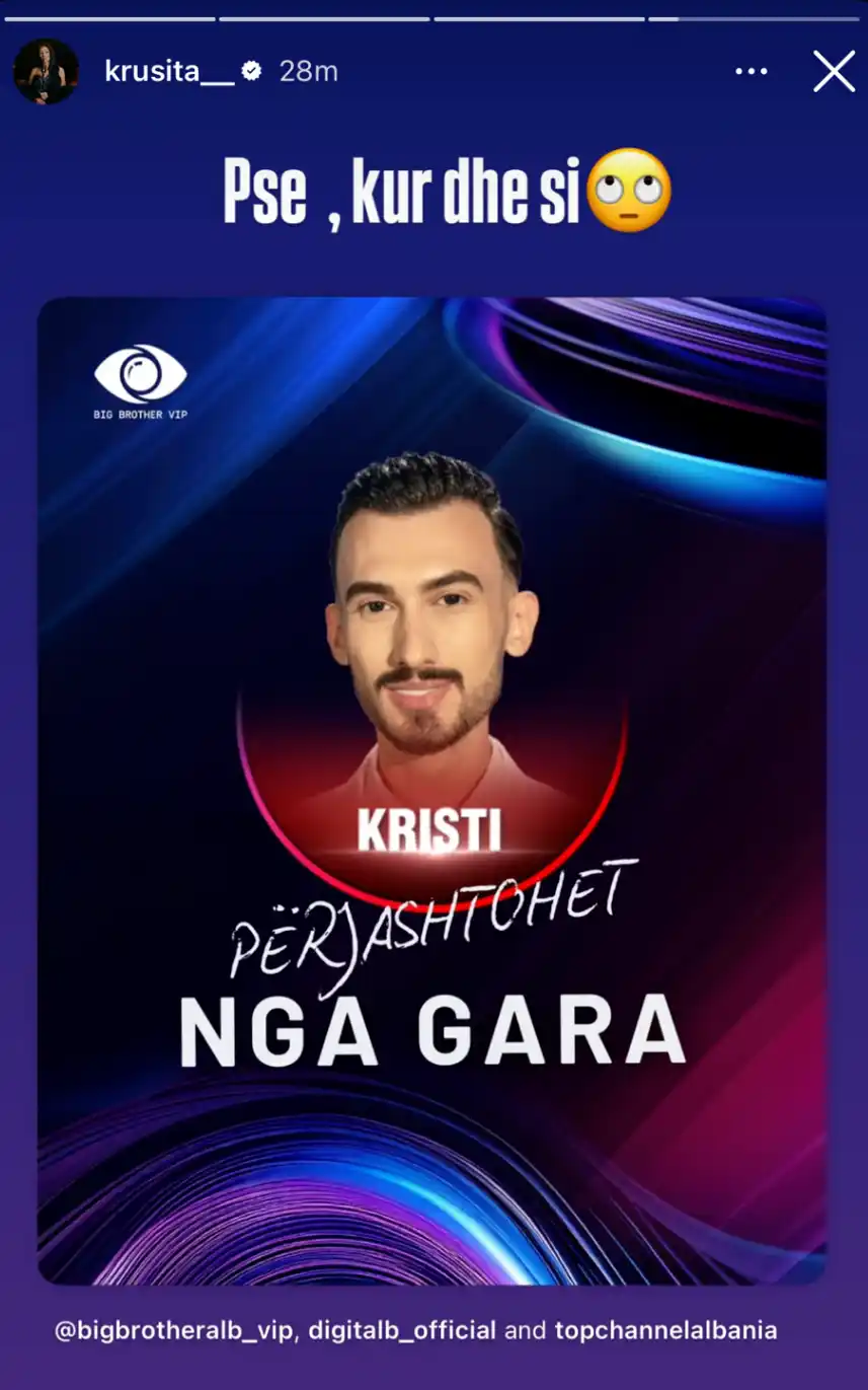 Pas largimit të Kristit nga Big Brother VIP Albania, ka ardhur edhe reagimi i parë nga Krusita.
