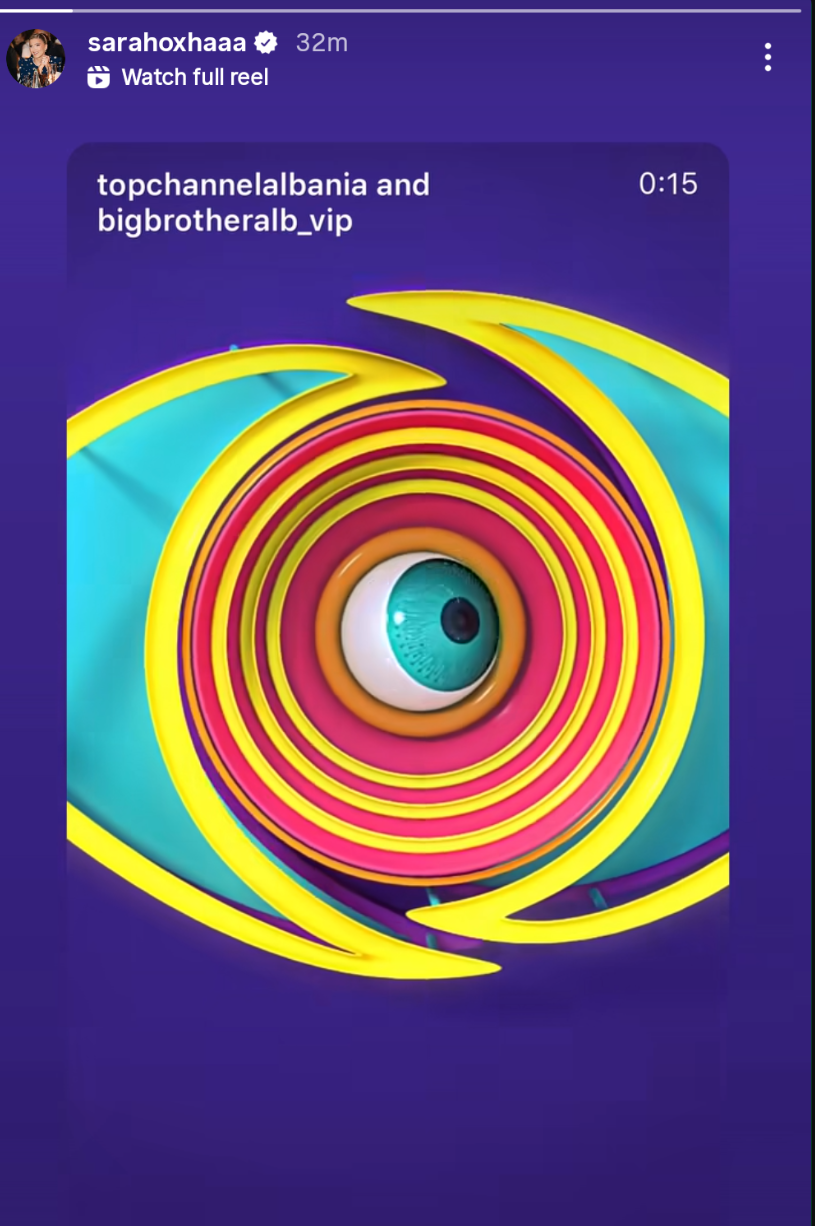 Sara Hoxha, pas zërave të fundit për një krizë të mundshme mes saj dhe Ledionit, ka ripostuar në InstaStory videon zyrtare të “Big Brother VIP Albania”, ku shfaqet syri simbol i formatit, duke treguar mbështetjen e saj.