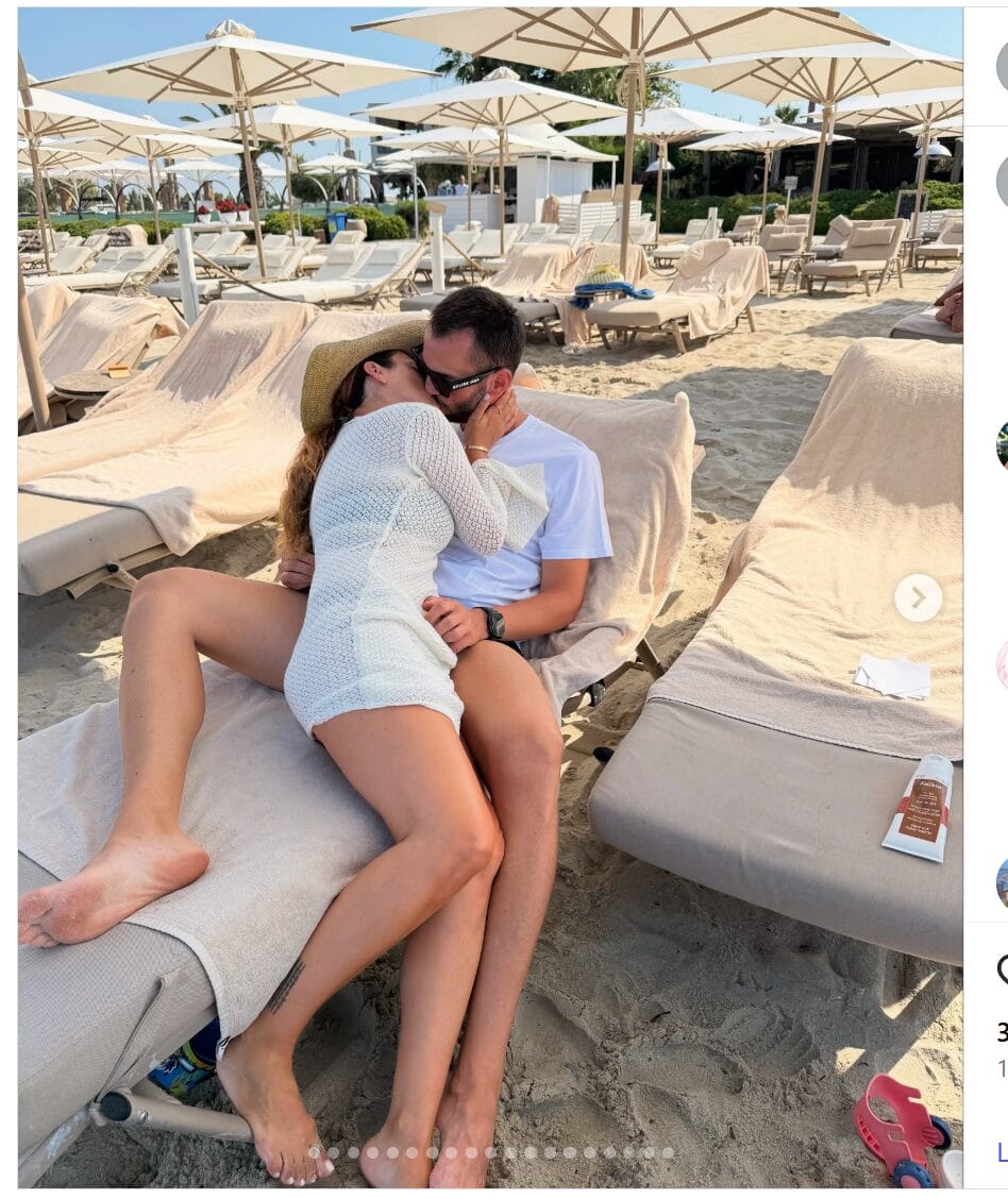 Në imazhin e postuar në InstaStory, çifti shfaqet duke shkëmbyer një puthje teksa relaksohen në shezllon. Postimi është shoqëruar me mbishkrimin: “OK boll tani hajde ikim te pishina:)”.