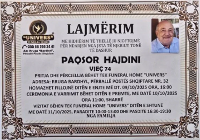 Paqësor Hajdini, ndërroi jetë duke lënë pas dhimbje për familjarët, të afërmit dhe miqtë e tij.