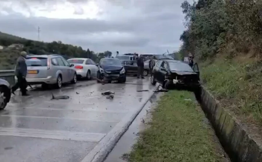 Në Rrugën e Kombit, si pasojë e ngricave janë përfshirë në aksident 15 automjete.