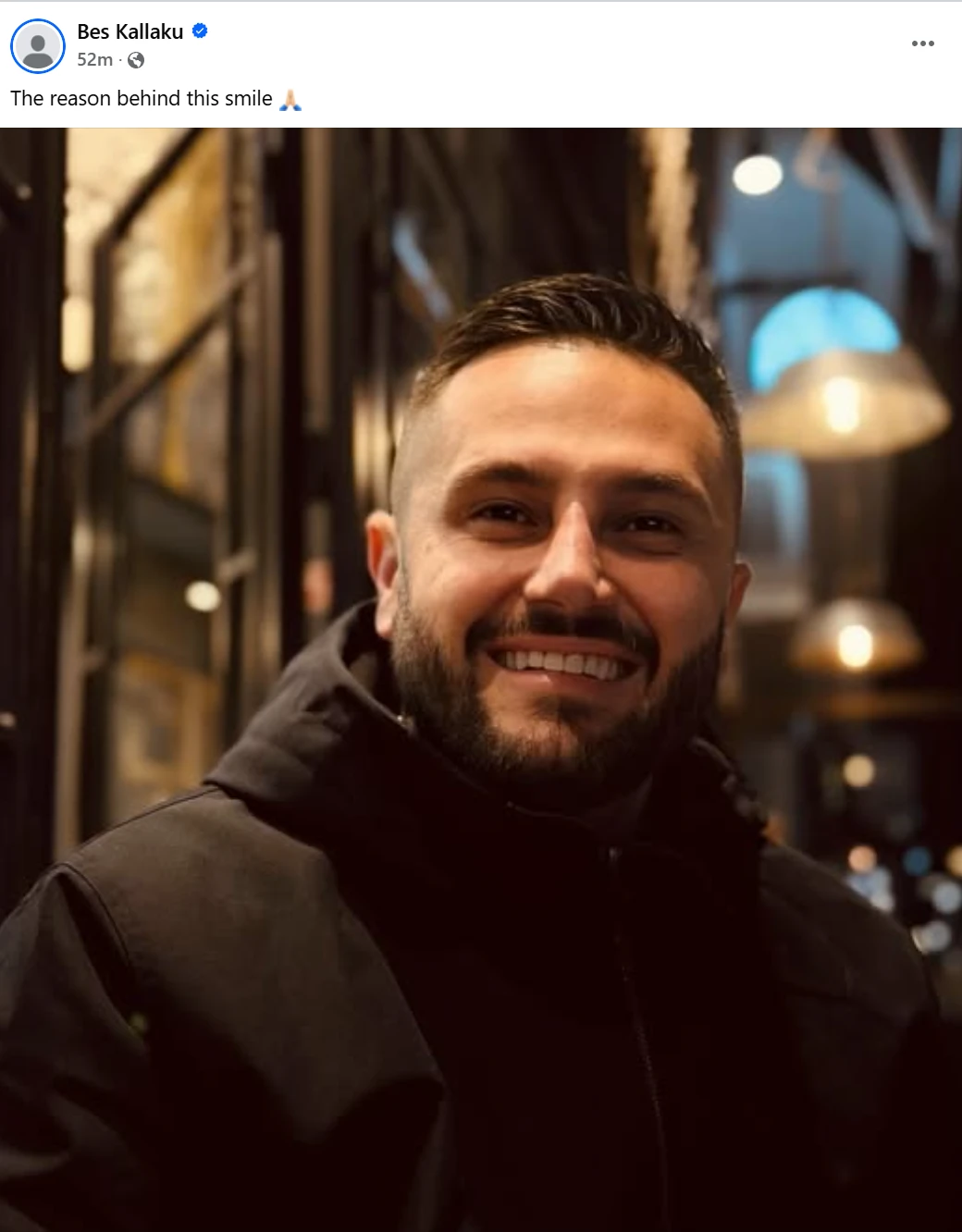 Pas lajmeve per Xhensilen dhe Ledrin ish partneri i kengetares Bes Kallaku ka postuar nje foto te tijen me shprehjen : “Arsyeja pas kësaj buzëqeshjeje 🙏🏻”